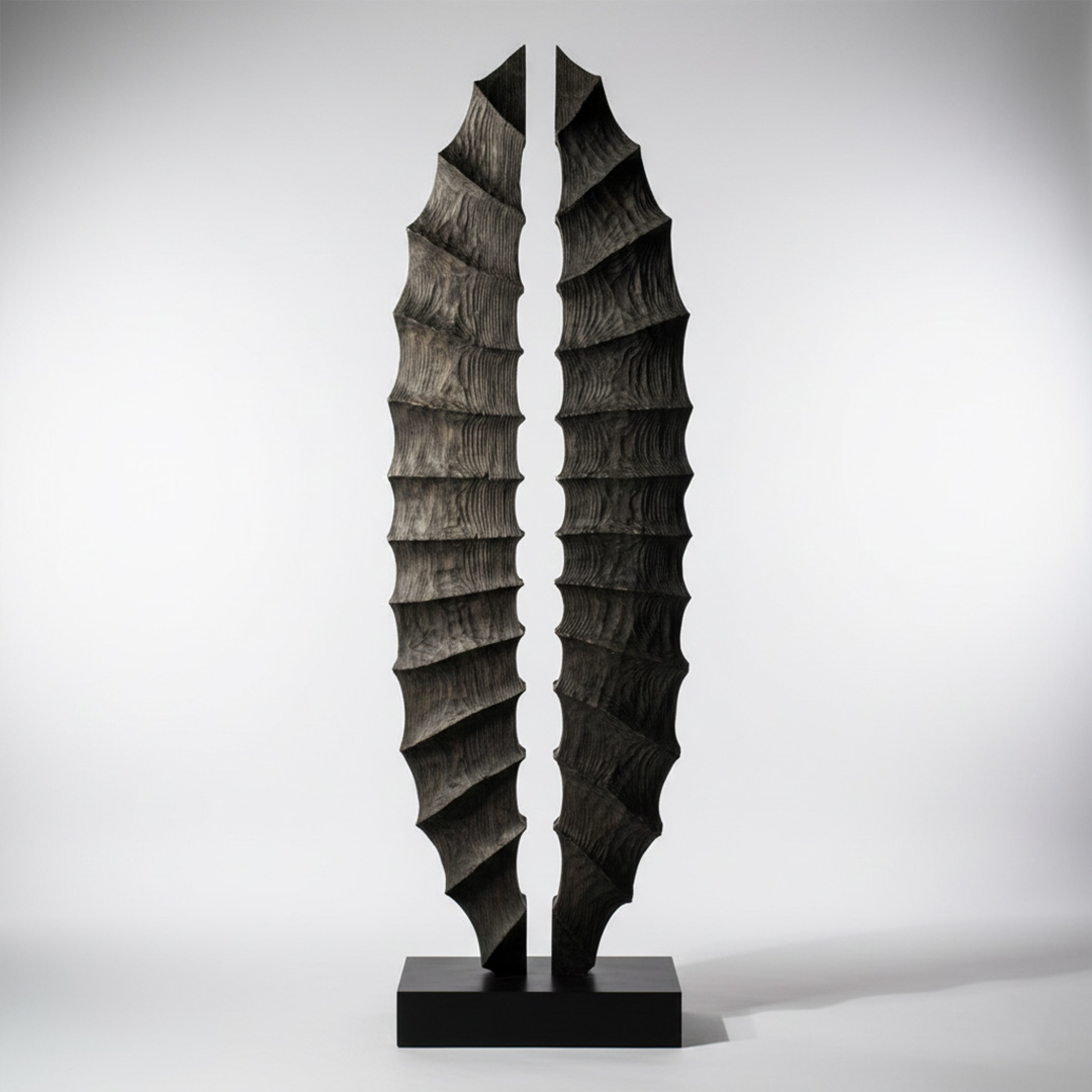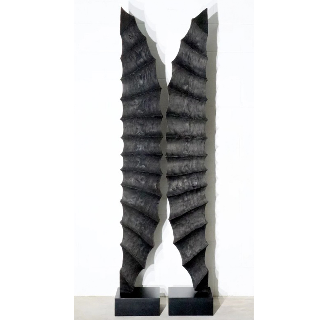 ARTIST STATEMENTI create sculptures that aim to evoke profound contemplation and resonate with my audience. I use wood as my primary medium and draw inspiration from the organic shapes found in nature. My fascination with wood has driven me to explore all ecological regions of the continent in search of exceptional pieces of timber. To achieve the desired effect on the material, I employ a range of techniques, such as burning, charring, brushing, distressing, oiling, buffing, bleaching, ageing, dyeing, and quenching. The natural beauty of wood enhances the organic forms of my sculptures, and I often include raw steel or brass, resulting in genuinely singular pieces.